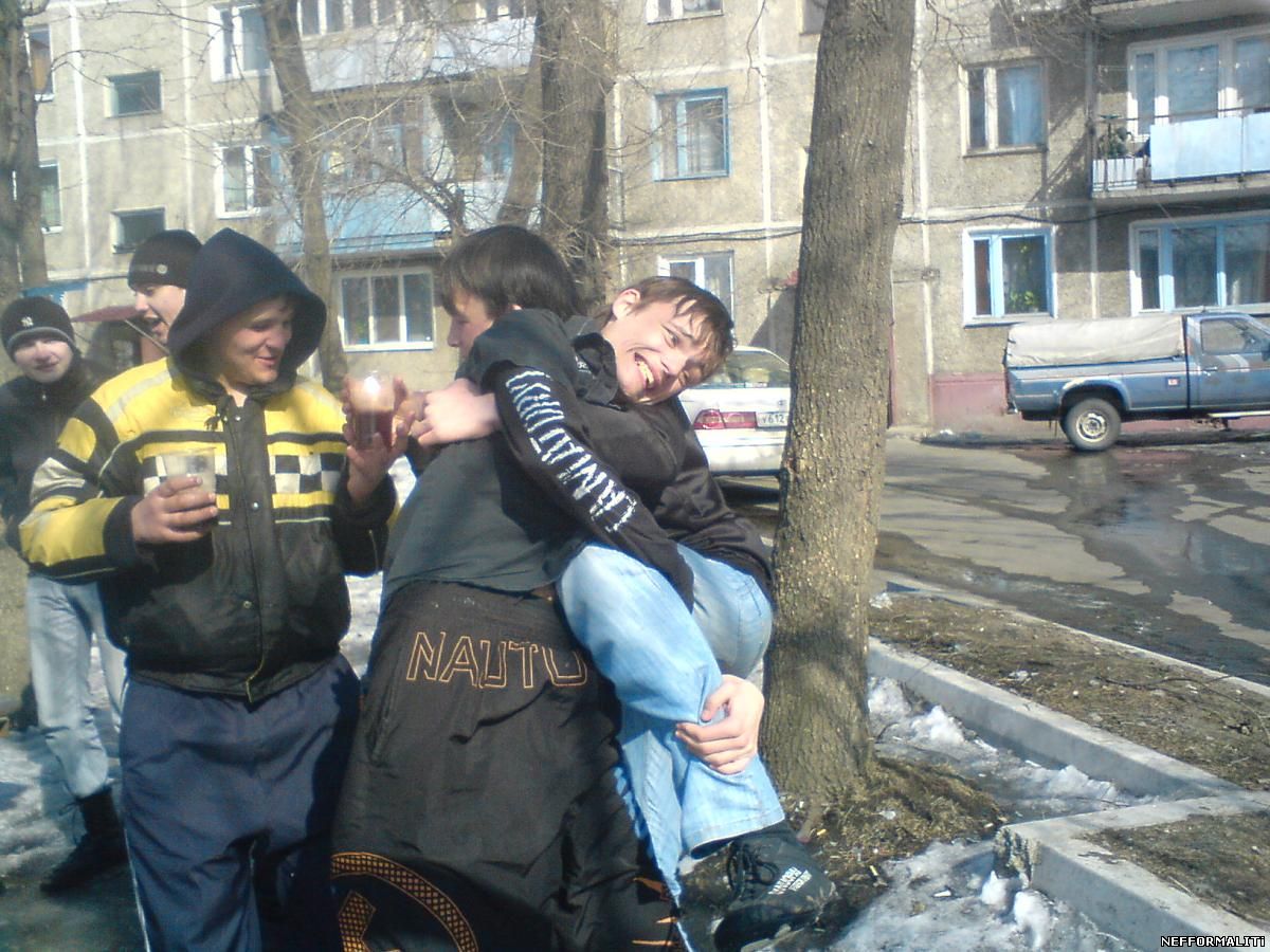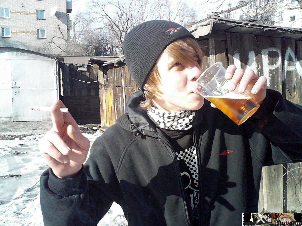 Тень истошно вопил,что она под _опой Серого была,а то что у Серого не _опа,а чёрная дыра,он вовсе не виноват. Нашли кепку таки мы у Ежика. С боем,но всё таки забрали.=)Меня же Тень очень убедительно убеждал,что мне хватает.Ну что делать? с ним согласился,навернув в бою с ним ещё той ужасной мути что показана выше. Потом мы с Тенем пошли в подъезд, говорили по поводу группы, по потом, когда мы из него вышли, поняли что мы потерялися…НА ТОЧКЕ КАК БУДТО ВСЕХ СМЕЛО!!!...мы обрыскав пару кварталов и никого не найдя решили посидеть в подъезде.В один прекрасный момент позвонила Юля(Морковка) и сказала – “так и так”. Мы ломанулись за ними и смотрим идут Серёга и Чапаев. Пройдя мимо нас сквозь зубы прошипели – “Нас мусора вкрепили.” Мы времени терять не стали и пошли с пацанами делая безпринципиальный вид,что мы все такие трезвые и типа мы вообще не при каких делах. Что касается Теня,так епо нему это вообще было видно как на зеркале – без куртки,весь продрогший(куртка была у Юли Морковки). Мы разделились с пацанами и двинули разными путями до Чайки. Встретившись все на Чайке(кроме Медведа и Губстара,так как их задержала милиция и после чего они попали на учёт) мы стали тусить там. Тень и Морковка уединились поговорить о своём. Что касается меня,то я искал духа,который чуть не выпил мой мосск. Когда пришли Вован и Серый и принесли ещё одно пиво через некоторое время мы заметили,что надвигается к нам три наряда милиции.Все дали деру через задний двор Чайки прямиком через забор. Бедный забор. Он проломился после 7-8 тел перелетевших через него. После этого мы посидели ещё за кафе “Смак” и пошли по домам…